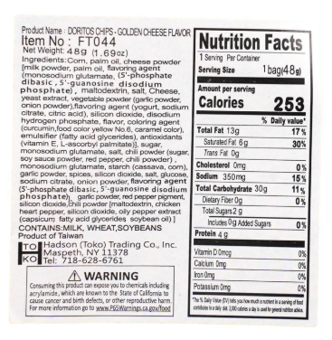 DORITOS Corn Chips Golden Cheese Flavor 48g